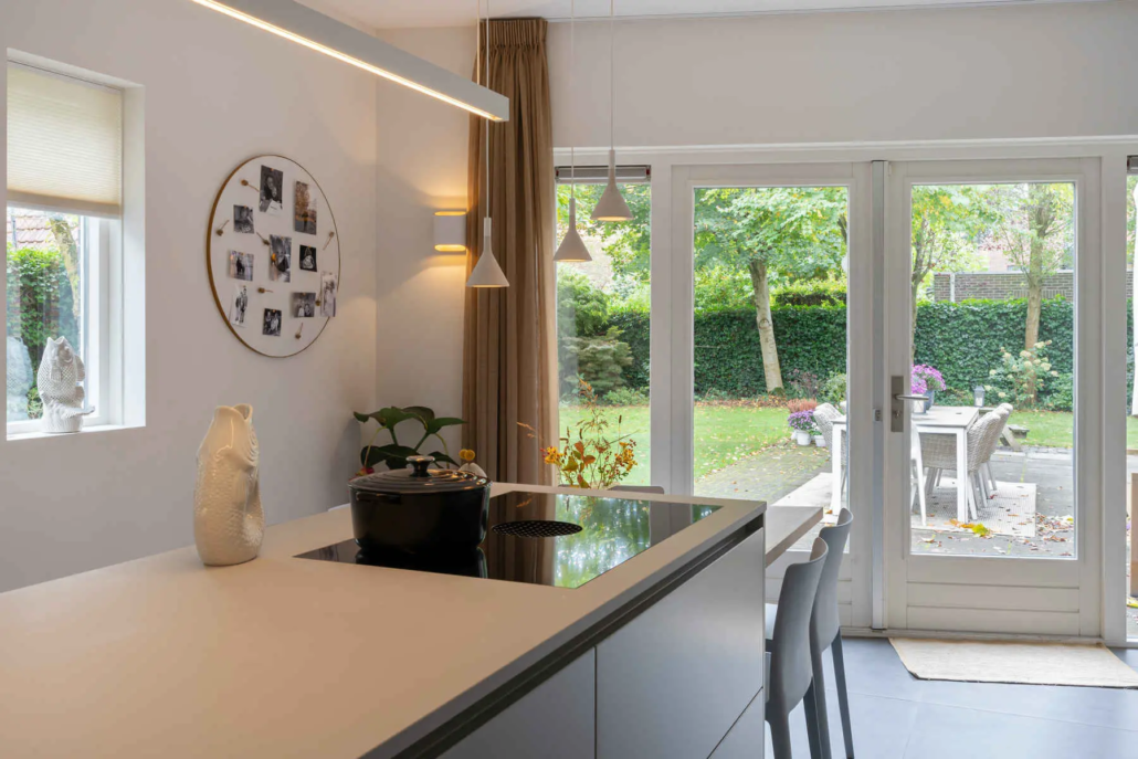 “We hebben verschillende opstellingen bekeken voordat we bij deze uitkwamen”, aldus Selma. “De nieuwe indeling maakt het overzichtelijker en lichter. De vorige keuken stond met de rug naar de tuin terwijl je nu juist naar buiten kijkt. Het is gewoon heerlijk om naar het licht toe te staan. Dat is een heel andere beleving en daardoor wordt het zelfs leuk en uitnodigend om te gaan koken.”