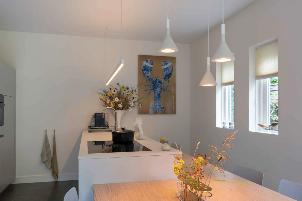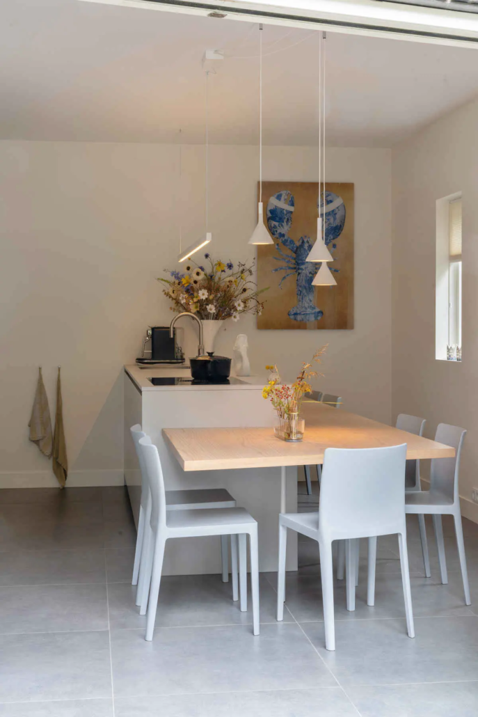 De leefkeuken is inmiddels de favoriete plek van het gezin. “We zitten veel meer in de keuken dan in de woonkamer”, vertelt Selma. “Bijvoorbeeld in de ochtend bij het ontbijt, na schooltijd met de kinderen of ‘s avonds met vrienden erbij; echt alles gebeurt hier. We hebben nog een eettafel in de woonkamer, maar daar eten we eigenlijk nooit aan. In de keuken is het gewoon veel gezelliger!”