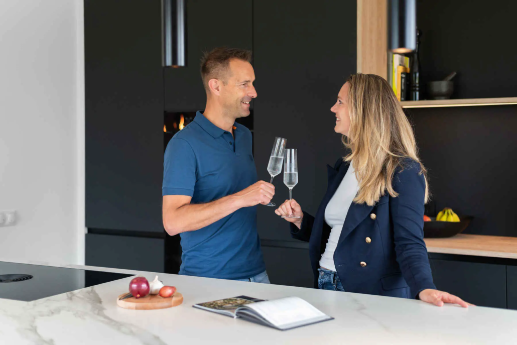 In Leeuwarden kozen Ilja en Mario voor een zwarte keuken die helemaal aansluit bij hun nieuwbouwwoning en besloten om opnieuw samen te werken met De Keukenkamer. Daar werden ze begeleid door Timo, Sybe, Gino en Pina, die ieder hun eigen bijdrage leverden aan het ontwerp en de uitvoering.